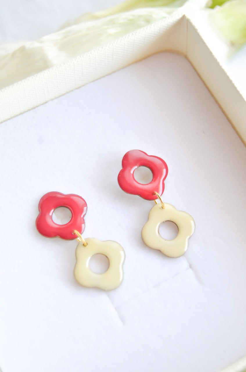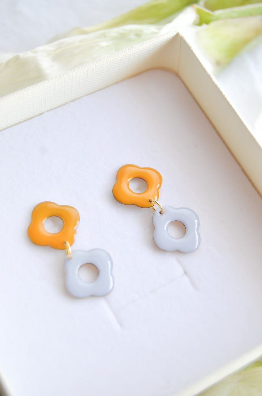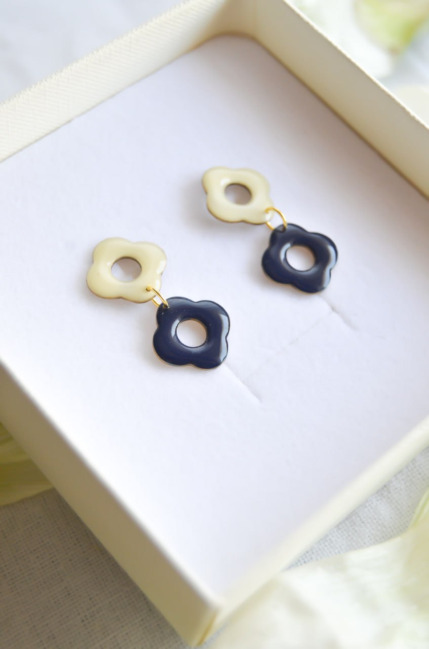 El pendiente está realizado en latón esmaltado con el perno (la parte que va en contacto con la oreja) soldado en plata 925 para garantizar comodidad y evitar alergias. Todas las piezas pueden hacerse 100% en plata o ser bañadas o chapadas tanto en plata como oro.