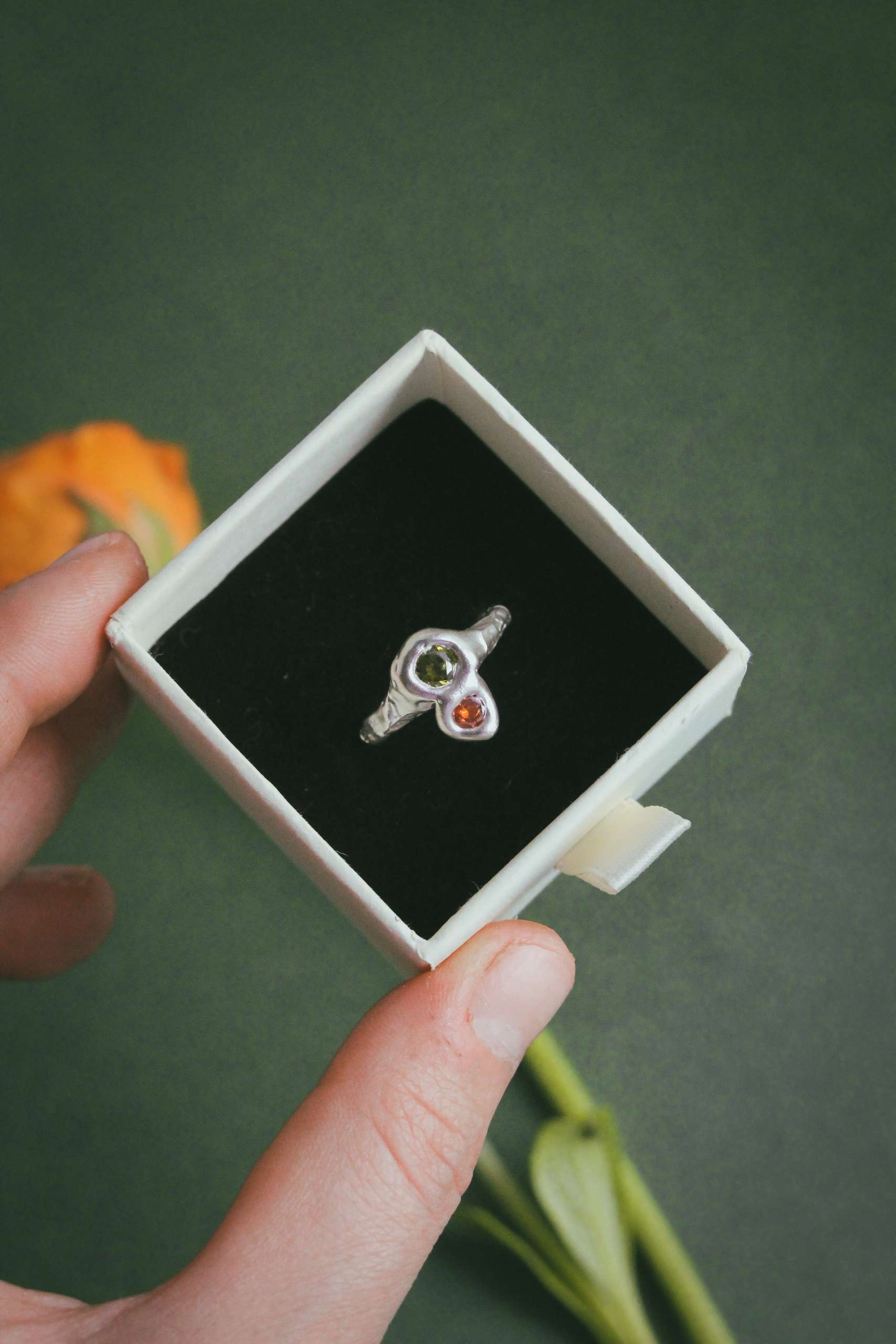 El Anillo Doblete es una pieza única e irrepetible, creada artesanalmente en plata 925. Modelado y trabajado a mano, cada detalle refleja el proceso íntimo del taller.