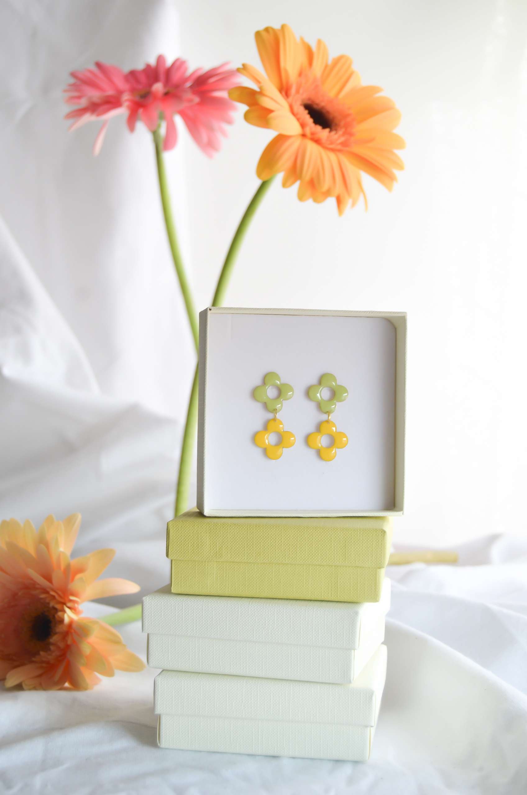 El pendiente está realizado en latón esmaltado con el perno (la parte que va en contacto con la oreja) soldado en plata 925 para garantizar comodidad y evitar alergias. Todas las piezas pueden hacerse 100% en plata o ser bañadas o chapadas tanto en plata como oro.