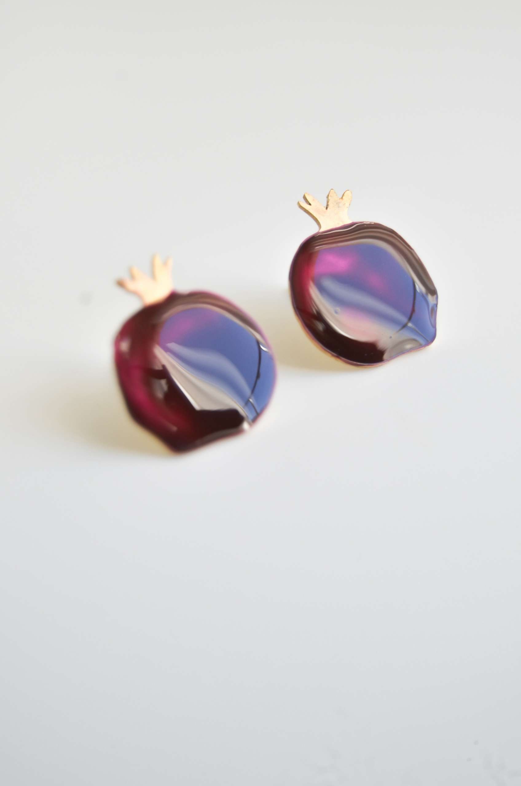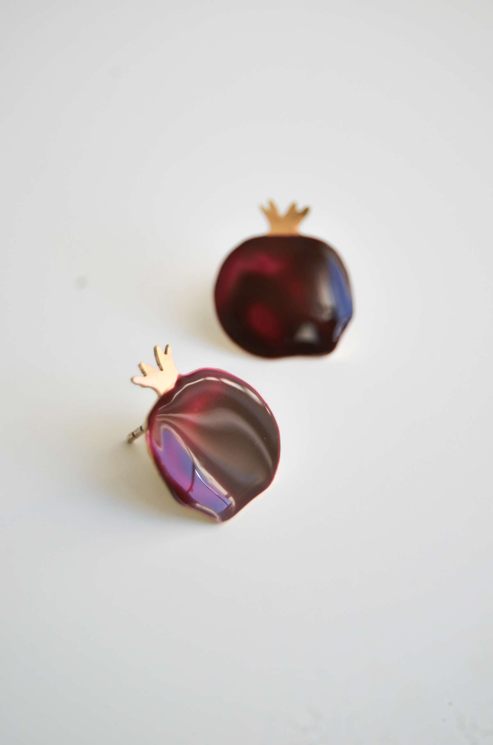 El pendiente está realizado en latón esmaltado con el perno (la parte que va en contacto con la oreja) soldado en plata 925 para garantizar comodidad y evitar alergias. Todas las piezas pueden hacerse 100% en plata o ser bañadas o chapadas tanto en plata como oro.